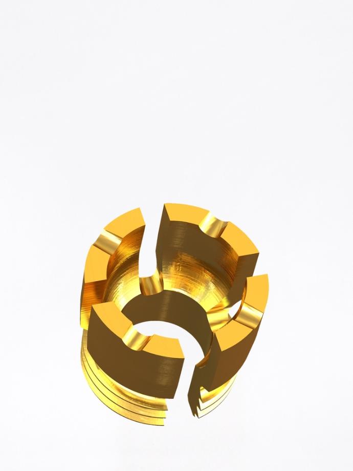 Ghiera ritentiva a lamelle Tuning E che compone la femmina dell’ancoraggio sovraradicolare ritentivo Dalbo®-PLUS nelle varianti basic e ellittica. Realizzata in lega nobile Elitor® (E), si attiva tramite il cacciavite / attivatore. Le lamelle Tuning dispongono di due scanalature nella parte basale e di un diametro interno ridotto. Frizione forte e un’ efficacia più ampia rispetto alle varianti standard e soft (2,17 - 2,20 mm).
