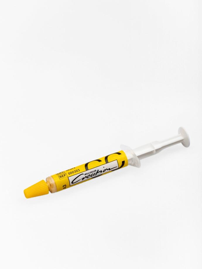 CC/Creapast è la pasta opaca ad uso odontotecnico di Creation per rivestire l’armatura in metallo. Pronta all'uso, la sua  consistenza può essere modificata leggermente con il liquido universale (UF). Conferisce al moncone un aspetto leggermente lucido.