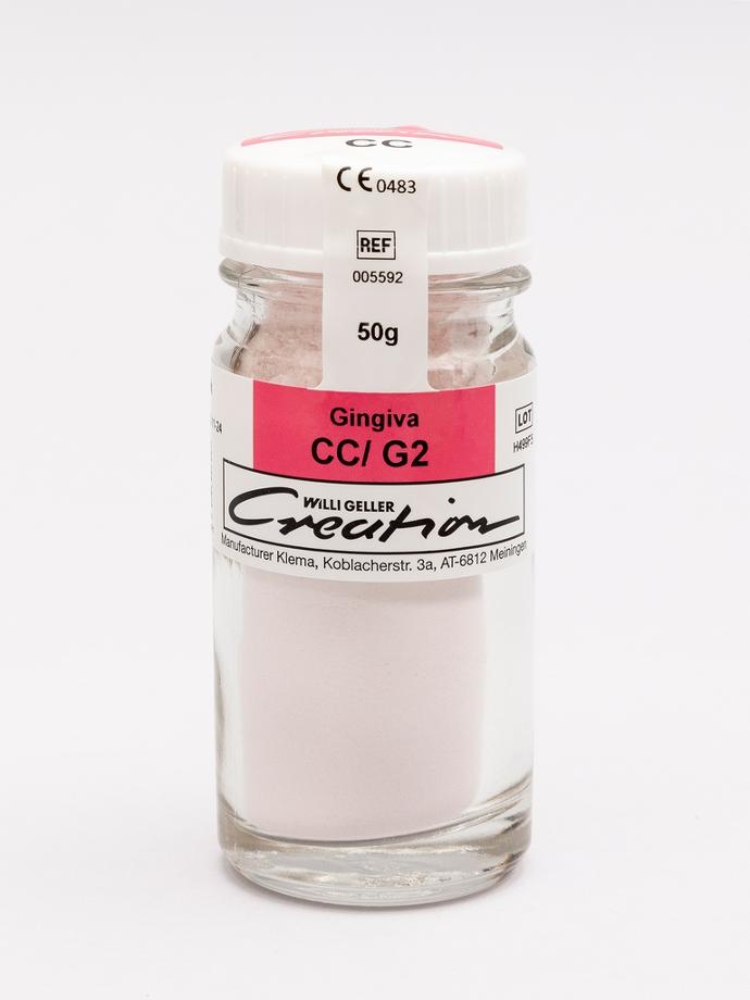 CC/ Gengiva è una massa ceramica in polvere per la riproduzione del tessuto gengivale su tutte le tipologie di armature in metalloceramica. Questa massa è utilizzabile per corone, ponti o sovrastrutture supportate da impianti. Grazie alle varietà di colori, garantisce una transizione pressoché impercettibile tra il dente restaurato e la gengiva del paziente.