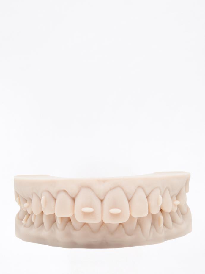 Ortho Model è una resina impiegata per la stampa 3D di modelli per allineatori dentali su misura. Le proprietà termoresistenti permettono a Ortho Model di mantenere un’ottima stabilità strutturale anche alle elevate temperature, infatti, con Ortho Model si riescono a stampare senza problemi modelli con spessori inferiori a 2 mm con una retrazione pari a zero.