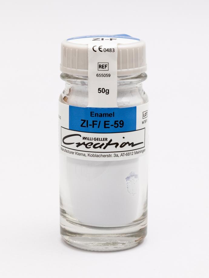 Creation ZI-F è una ceramica a basso punto di fusione ideale per eseguire rivestimenti e piccole stratificazioni su ogni tipo di armatura in Zirconia. Questa ceramica è ideale per la sua capacità di replicare riflessi luminosi naturali. Grazie al contenuto di feldspato, è molto resistente e garantisce un dinamismo luminoso naturale. La sua conformazione permette anche la correzione di veneer realizzati con la ZI-CT, poiché la temperatura di cottura della ZI-F è inferiore di ben 100° C.